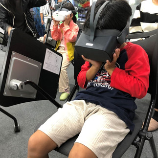 上空からの桂台トンネル工事の全貌や、掘削している様子が360度の映像で映し出されると、子どもたちは「うわーっ!」と、歓声を上げてVR体験を楽しんでいました。